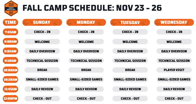 Welcome to our Houston Dash and Dynamo FC Fall Break Camp at Katy International Sports Complex! We are looking forward to what promises to be an exciting camp! We will be providing players with a fun environment to improve their skill!